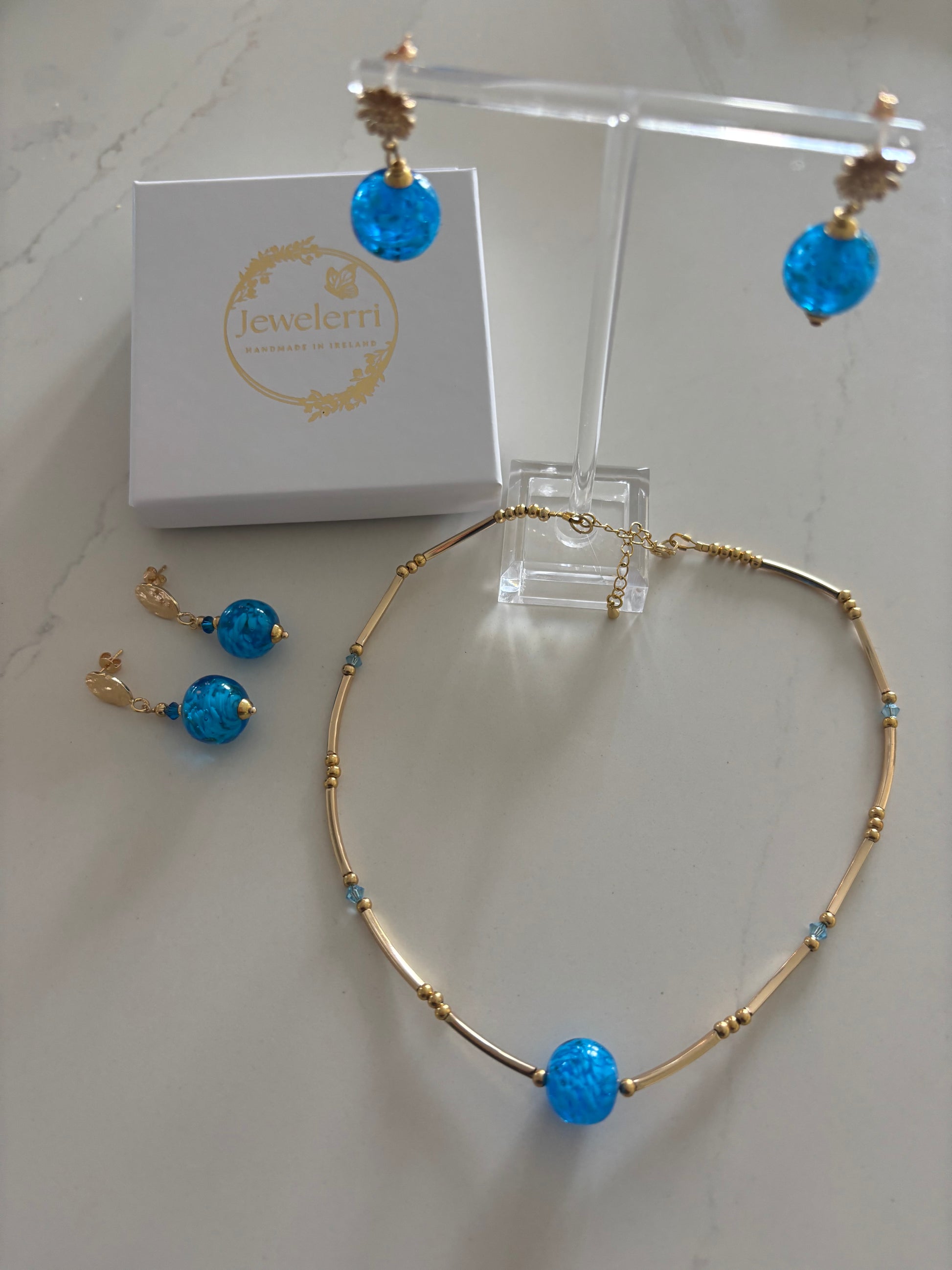 Elevate your elegance with the Murano Blue Daisy stud, featuring a captivating cobalt blue Murano glass center set in refined gold plating. This delicate floral design brings a sophisticated touch to any ensemble, combining timeless artistry with subtle charm for effortless style.