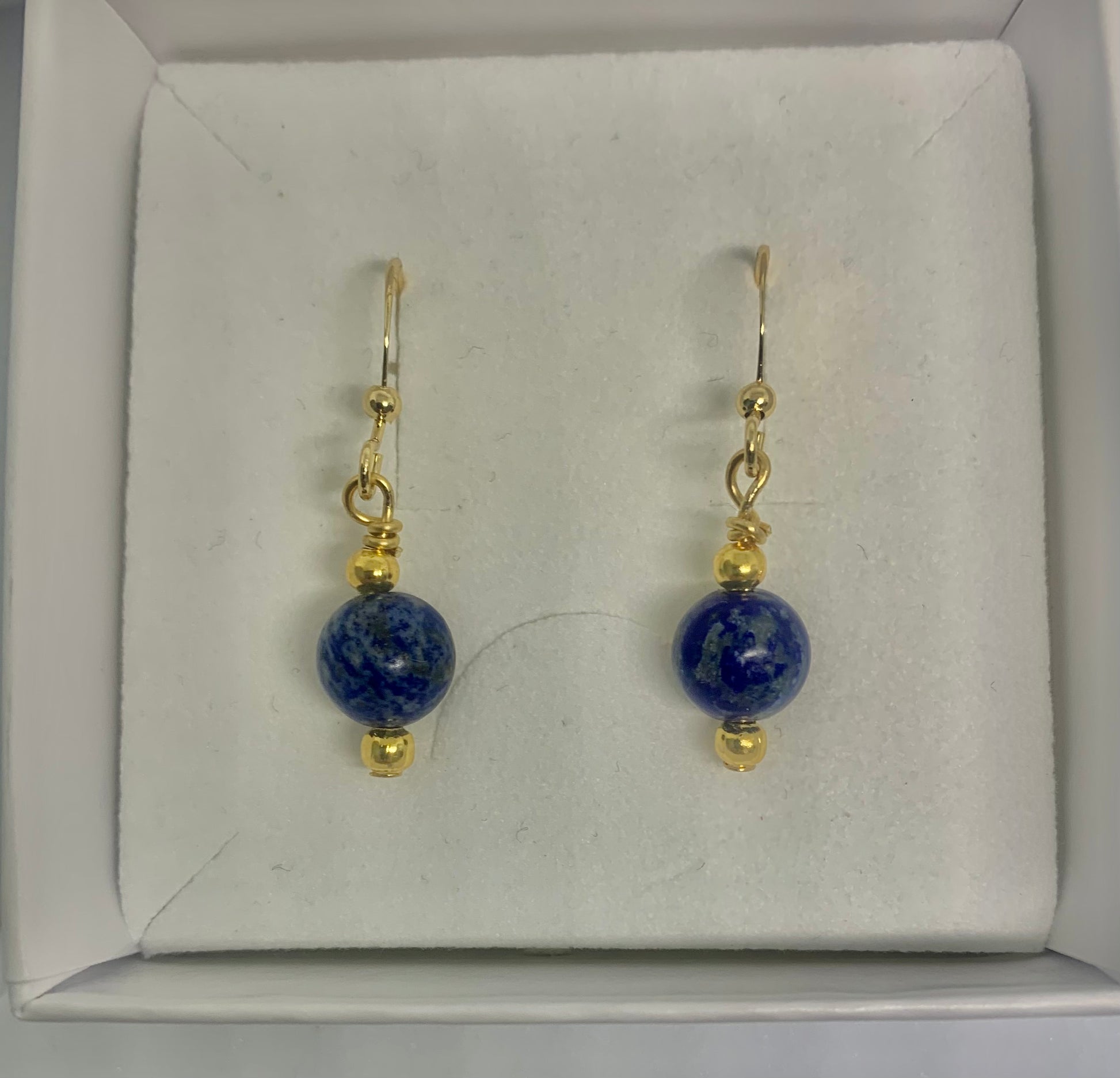Crafted with deep blue lapis natural stone & 24k gold plated beads. Petit drop earrings suit any season with their versatile design. The small drop adds a touch of elegance and all earrings are nickel-free for comfortable wear. Elevate any outfit with these timeless and stylish earrings.